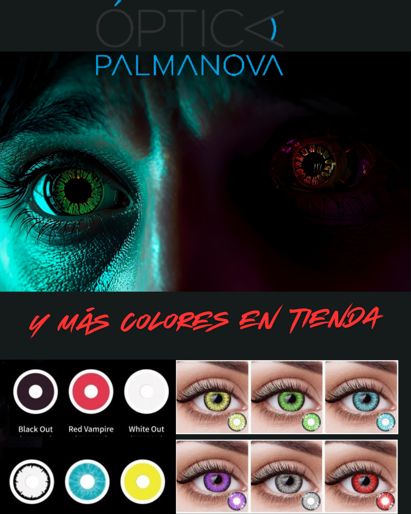 Lentes de contacto neutra con modelos de vibrante color. No corrige defectos visuales. Producto cosmético, 2 unidades por caja.